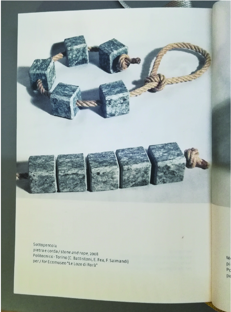 Trivet in stones and rope, realized by craftmen for the project “Eco e Narciso” by Provincia di Torino in 2008 – exhibited in Rorà ecomuseo.
