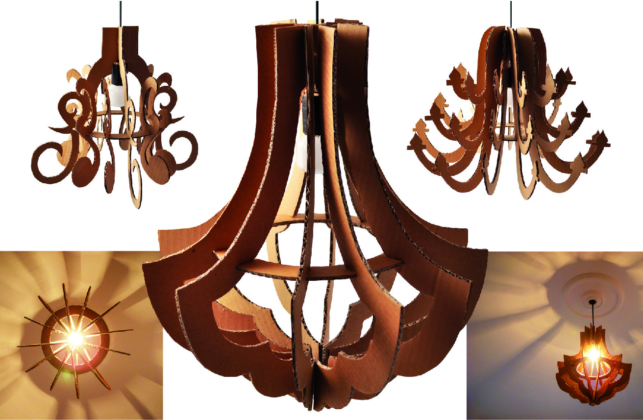 Chandelier in cardboard, in different shapes that remember the Savoy’s chandelier – “Materialmente” project – “Merchandising per le regge sabaude” promoted by Confartigianato Torino – presents in some exhibitions as Artò in 2011.