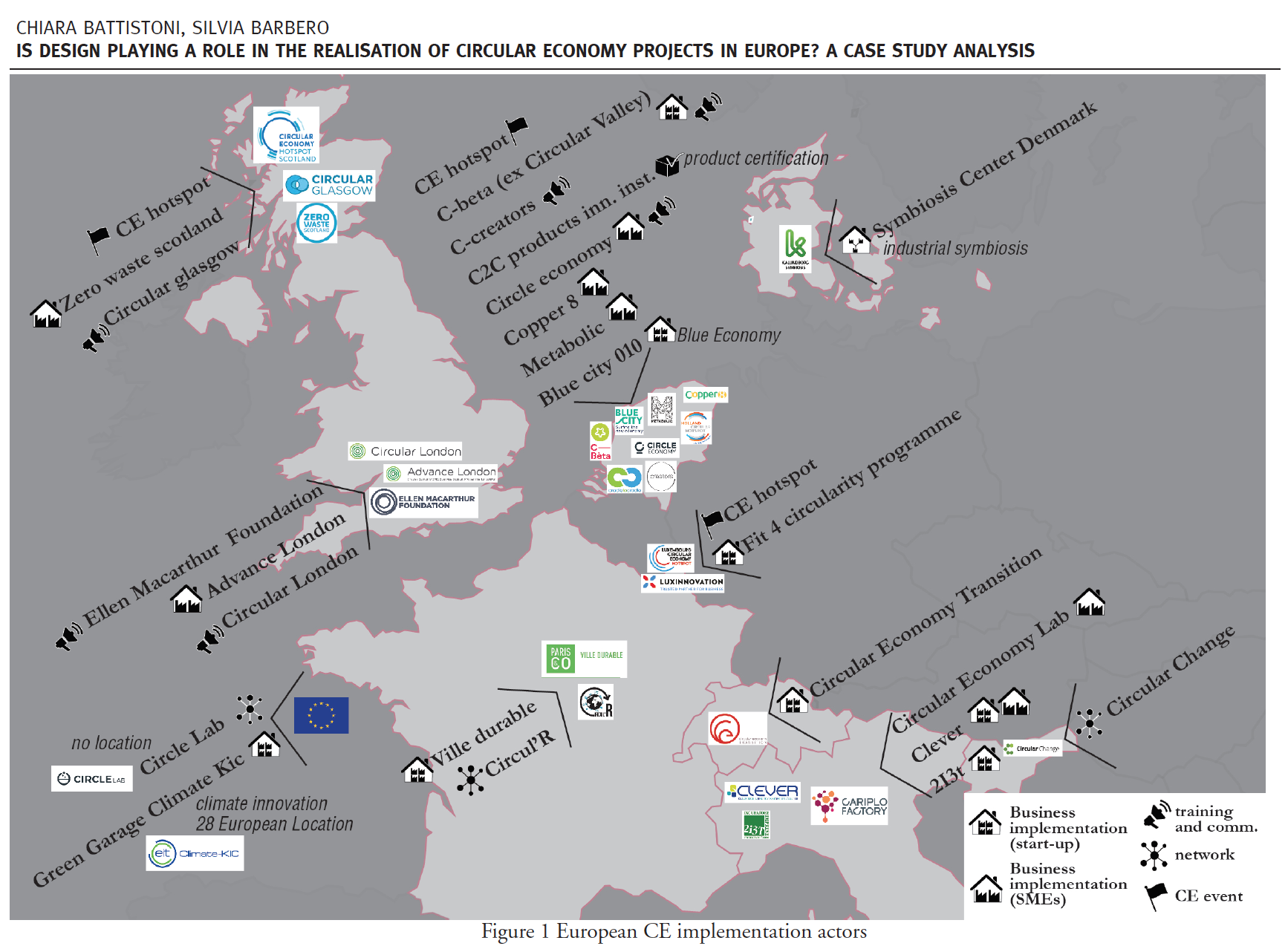 Thanks to the strong push coming from the European Union to fight waste production, the Circular Economy (CE) has gained an important role in Europe. Following this trend, many institutions nowadays state to work on the CE implementation or supporting the transition to a CE. However, are they including design approaches and practices? The design phase is starting to be considered the crucial point to obtain a CE as it required a profound radical change from the beginning of the process and at system levels. After framing the CE concept, we performed desk research to identify which are the players in the CE projects implementation. Afterwards, a multiple case study analysis were performed to the most proper one to understand the presence and the role of design in the implementation process. The results placed the actors in a very fragmented framework and seem to lack almost completely the design presence.